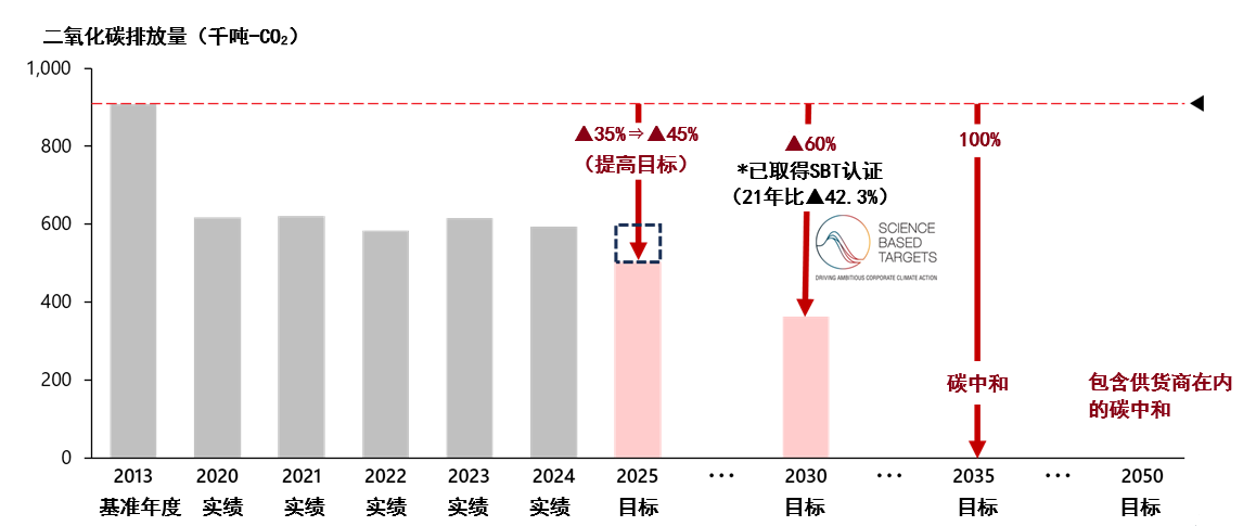 通過日常節(jié)能活動(dòng)、在生產(chǎn)過程中有效利用可再生能源(如引進(jìn)太陽能發(fā)電設(shè)備)、電力消耗可視化及生產(chǎn)技術(shù)革新等手段,在2024年度我們實(shí)現(xiàn)了相比2013年度二氧化碳排放量減少36.3%,并提前一年達(dá)成了原定于2025年度的減排目標(biāo)。